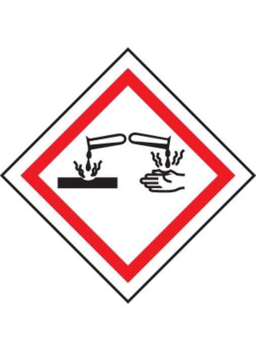 A corrosive substance is any substance that will dissolve or damage other materials/substances when it comes in contact. Corrosive materials cause chemical burns, a distinct type of tissue damage. Ensuring corrosive materials are labeled and signed ensures they are properly stored and can protect from chemical burns. GHS is the new Globally Harmonized System of classification and labeling of chemicals. GHS came into effect in 2015 and gradually phased out the existing orange and black CHIP regulation by 2017.