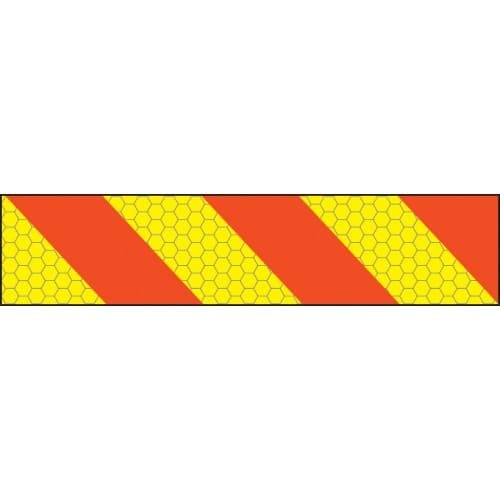 These vehicle marking plates have a prismatic polyester reflective surface which is manufactured to ECE 70 specifications. The high grade retro-reflective yellow and fluorescent red finish sits on a 1mm aluminium.