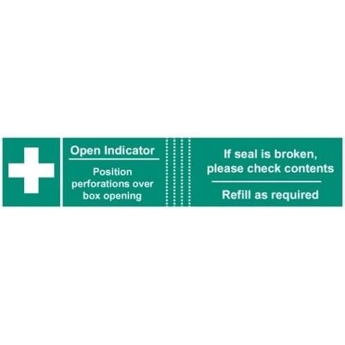 These easy-break labels have been designed to clearly identify when/if a first aid box has been opened. This help ensure that first aid boxes remain fully stocked