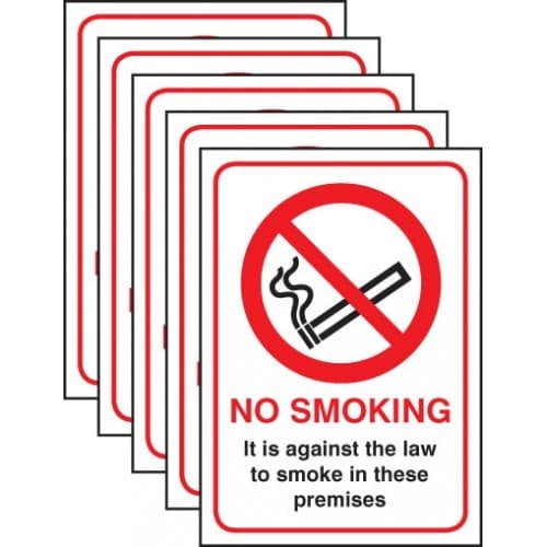 The Smoke-free (Signs) Regulations 2002 (England) states that at least one legible no smoking sign is required to be displayed in smoke free premises. Pack of 5 for multiple locations