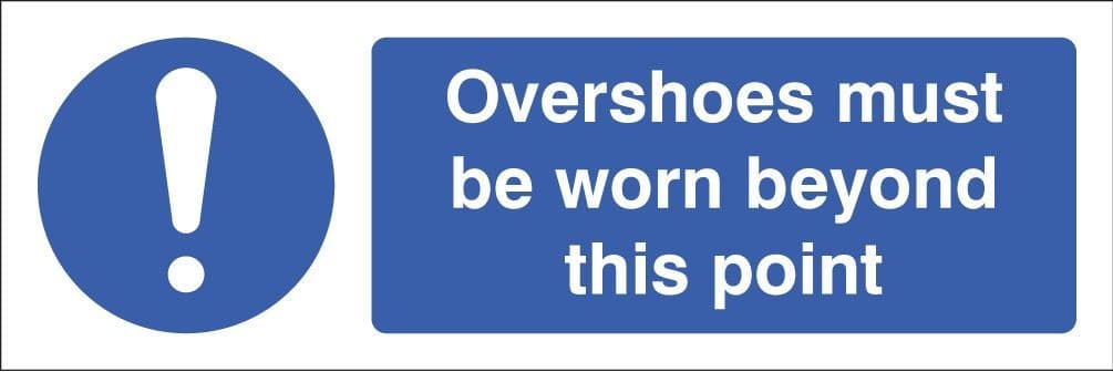 Overshoes can protect flooring from being damaged or stained by inks, dirt's, etc. Ensure employees and visitors wear overshoes when entering specific areas with this mandatory safety sign