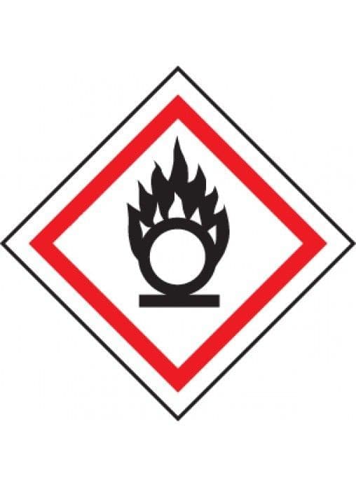 An oxidiser or oxidising agent is a substance that can cause or contribute to the combustion of other material. Ensuring substances that are oxidisers are clearly signed ensures they don't come into contact with chemicals or substances which could be effected by such a substance. GHS is the new Globally Harmonized System of classification and labeling of chemicals. GHS came into effect in 2015 and gradually phased out the existing orange and black CHIP regulation by 2017.