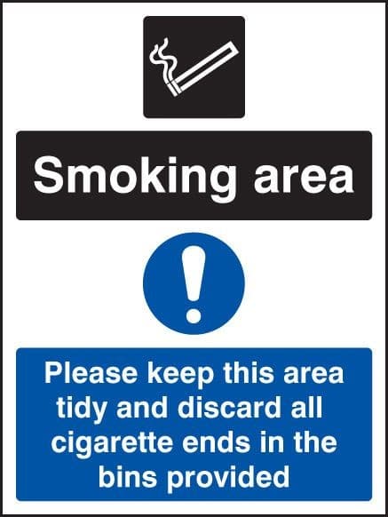 Under BS EN ISO 7010 and BS 5499, as with First Aid signs and Fire Exits, signs relating to Designated Smoking Areas are deemed as Safe Condition signs. These signs should always use white text on a green background, alongside a tick or appropriate symbol. Whilst we actively endorse and, wherever possible, adhere to the relevant Standards, we feel in this specific instance signs permitting smoking should under no circumstance be deemed as ?safe?. In acknowledgement of the damaging affects of smoking, please note our range of signs utilises black to clearly differentiate these signs from Safe Condition signs.