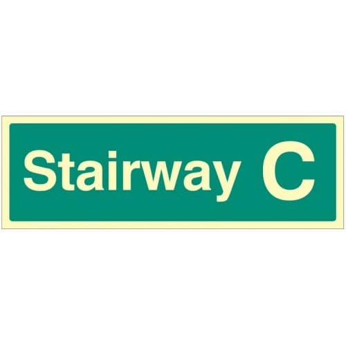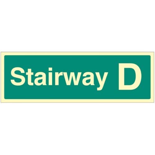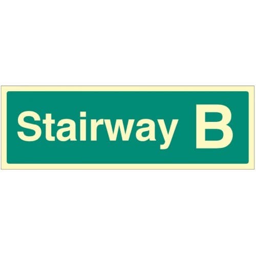 To assist the fire and rescue service in identifying each stairway of a building, stairway identification signs identify the stairway by stairway letter and should be located on every landing of a fire-fighting stairway. Stairway ID signs should be supplemented by floor level and dwelling indictor signs (positioned directly below the Storey ID sign), which provide information as to the dwellings (flats or maisonettes) located on the storey in question.
