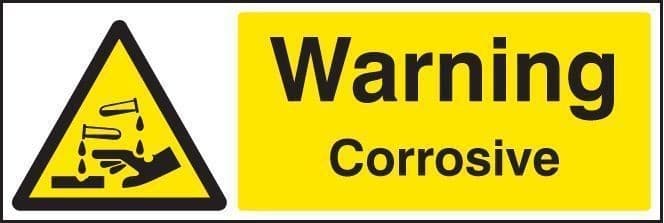A corrosive substances is one that will destroy, dissolve and damage other substances when it comes into contact with them. The deterioration can happen in minutes (such as certain acids when spilled on skin) or slowly over days, months or even years (such as the rusting of iron). At low concentrations, a corrosive substance is called an irritant (and its effect on living tissue is called irritation). At high concentrations, a corrosive substance causes chemical burns and in extreme cases can even cause death. Highlighting that there are corrosive substances in the area is an effective way to advise and forewarn of potential dangers.