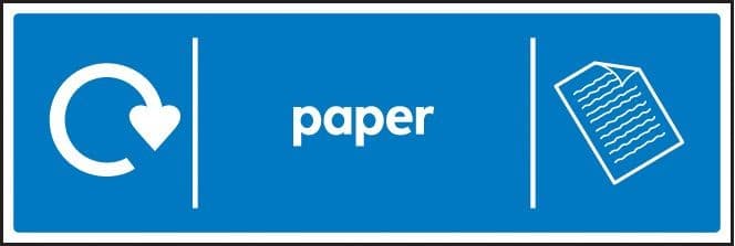 Recycling signs ensure your workforce and visitors are able to clearly identify between bins / areas dedicated to a recycling programme. All signs are WRAP compliant (Waste & Resources Action Programme). Recycling paper has many environmental benefits, such as: Resource conservation, reduced energy consumption, less landfill waste, reduced emissions and easy accessibility.